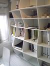 建築家らしく、事務所の内装はすべて自分でリフォーム。特に素敵なのが壁に立てつけの棚。中国で切り出した材木を持ってきて組み立てるという気合いの入れよう。いつか家の設計を頼みたいですなあ。