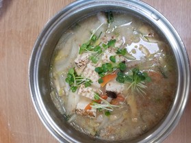 | 【当日分】主菜:牛肉のカラフル野菜ロール、エビのチリソース 副菜:タコのマリネ 汁物:焼き豆腐とたっぷり野菜のごま風味お味噌汁 | |