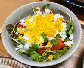 黄色い粒状の卵黄が雪上に咲く春の花《ミモザ》の花に似ていることから名付けられたサラダです。
