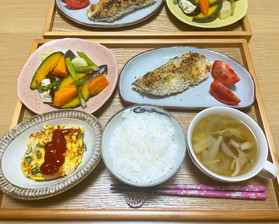 本日は、パン粉にハーブ塩と粉チーズを混ぜ合わせて鰆にまぶし、オーブンで焼いて仕上げました。
